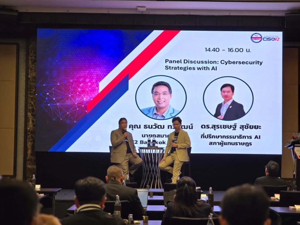 ผมและ อ.ป๊อป(นายกสมาคมISC2 Bangkok Chapter) ได้รับเชิญเป็น Panel Discussion ในหัวข้อ ‘Cybersecurity with AI’ ให้กับหลักสูตร Executive CISO ของสถาบันวิชาการความมั่นคงปลอดภัยไซเบอร์แห่งชาติ (THNCA) ผู้เข้าอบรมหลักสูตรนี้มาจากผู้บริหารกระทรวง และ ซีอีโอบริษัทใหญ่
