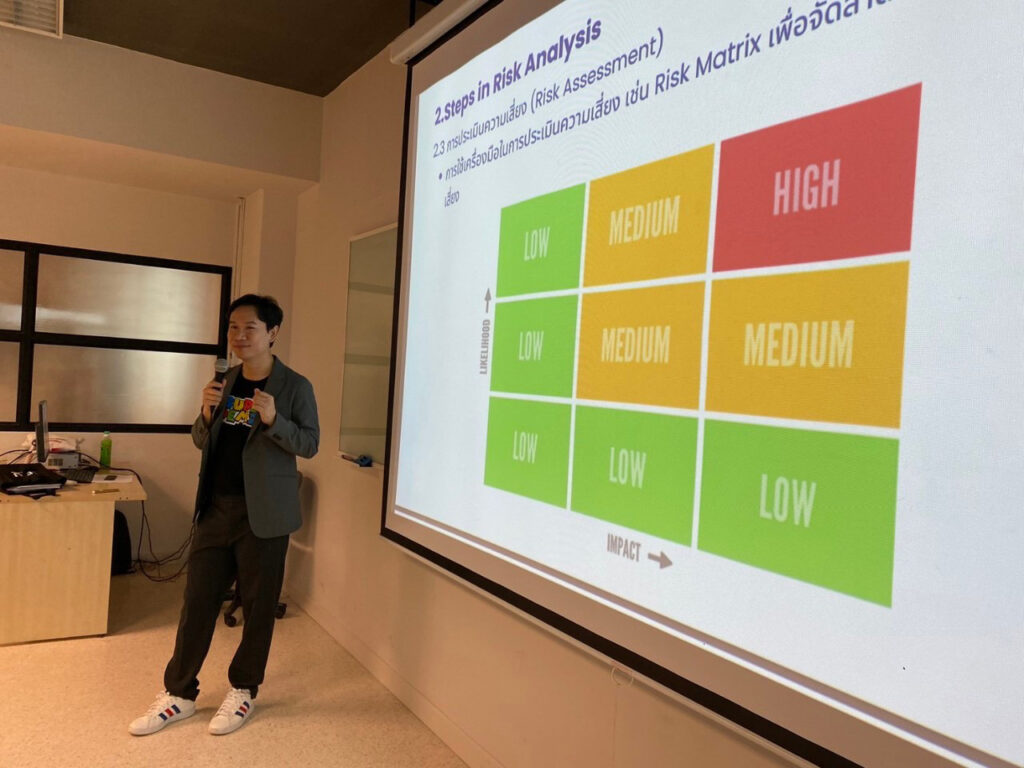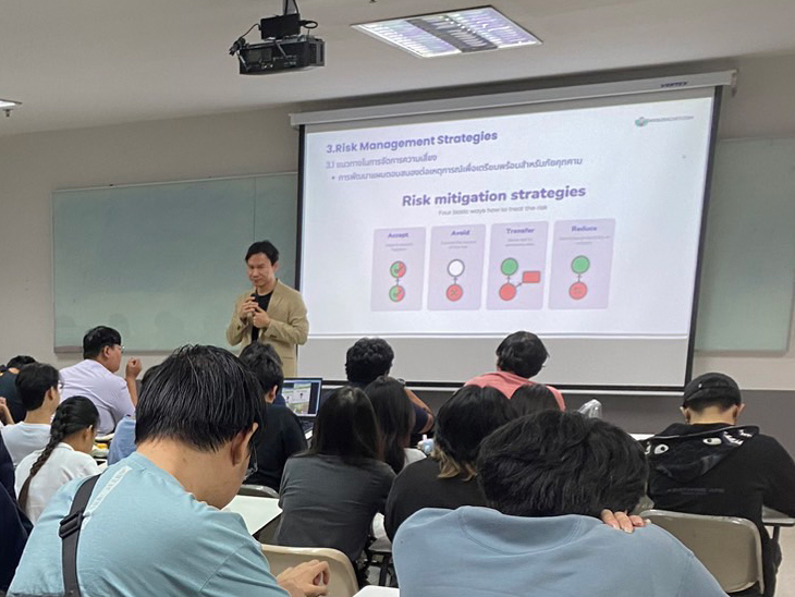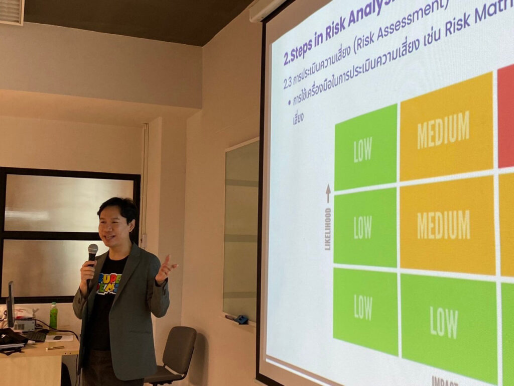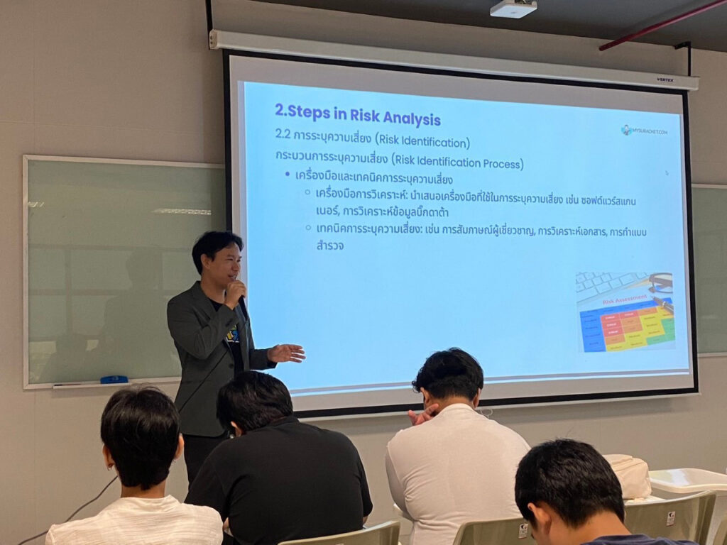 ภาพการบรรยายหัวข้อ “กระบวนการวิเคราะห์ความเสี่ยงใน Cybersecurity” ในรายวิชา ICT306 การบริหารจัดการสารสนเทศและความมั่นคงปลอดภัย ภาคการศึกษาที่ 1/2567 ใน SPU IT Campagn “เรียนกับตัวจริง ประสบการณ์จริง”